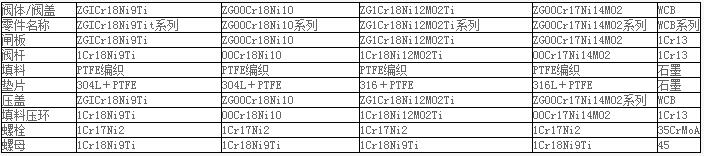 手動高壓閘閥-主要零件材質(zhì)