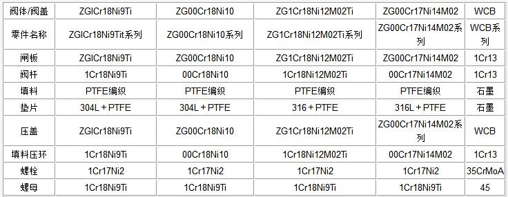 Z41W不銹鋼閘閥--主要零件材質(zhì)