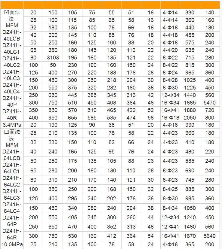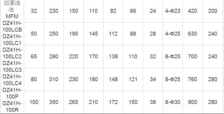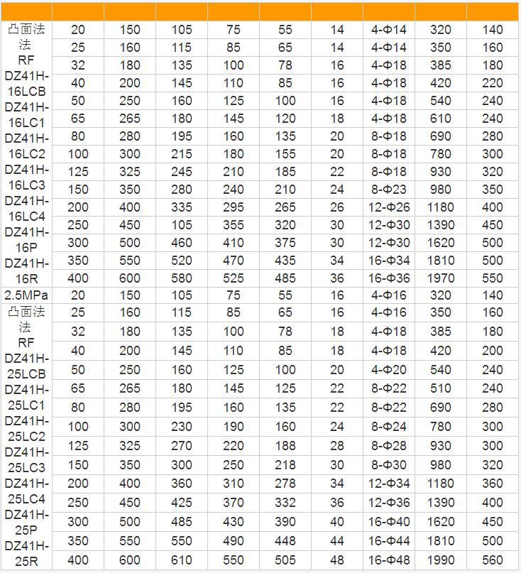 三、Z41H低溫法蘭閘閥規(guī)格主要尺寸(PN1.6MPa-2.5 MPa):