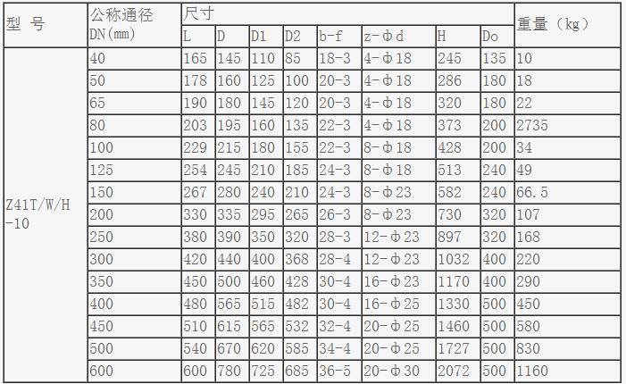 閘閥主要連接外型尺寸