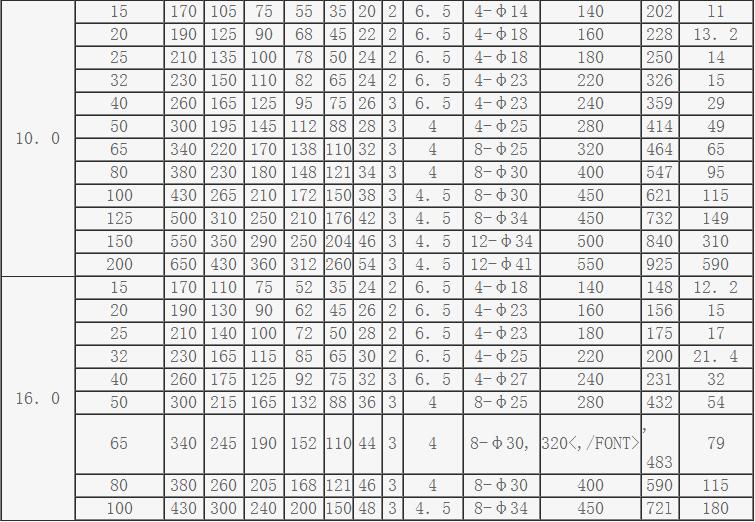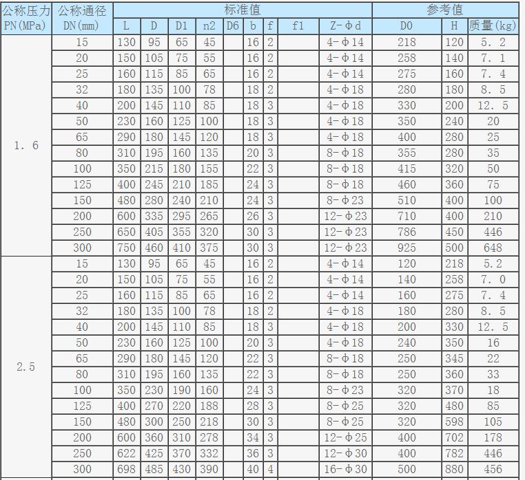 法蘭截止閥主要外形尺寸、連接尺寸及質(zhì)量