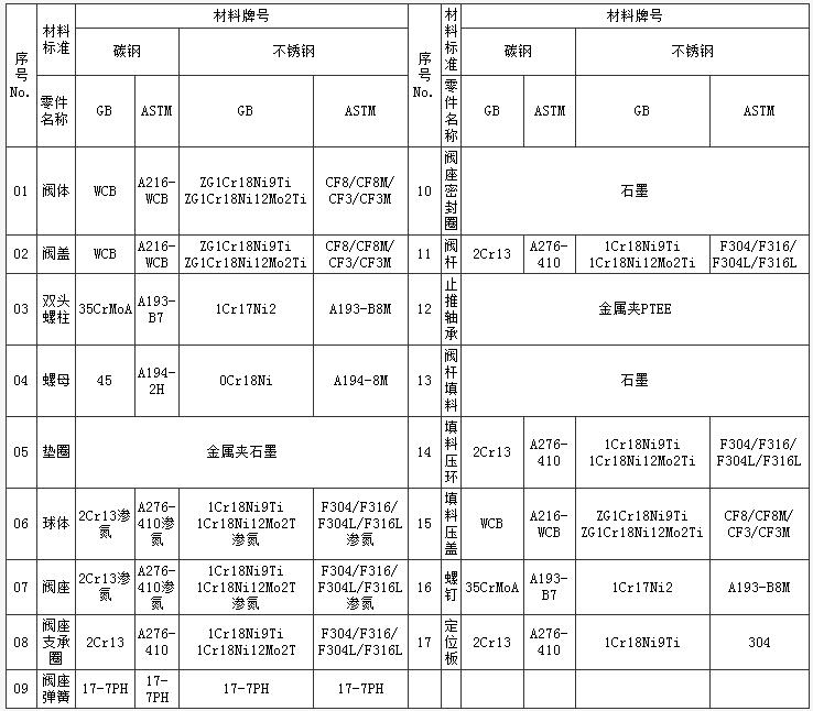 法蘭浮動(dòng)球閥主要零件材料