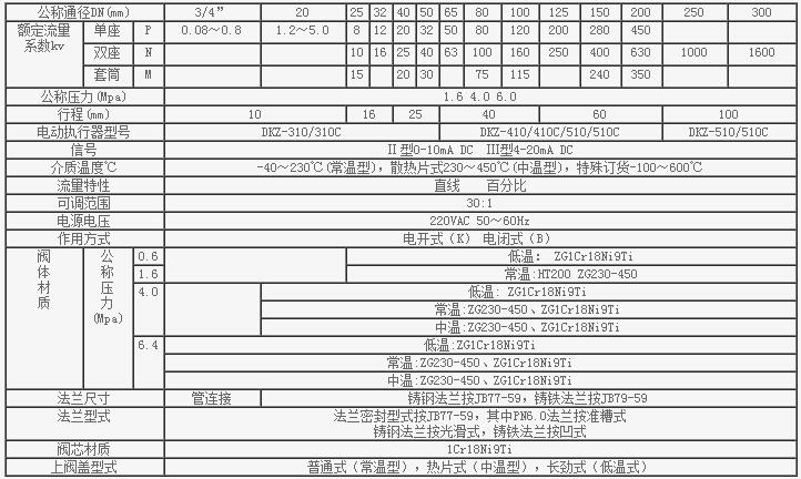電動套筒調節(jié)閥規(guī)格與技術參數