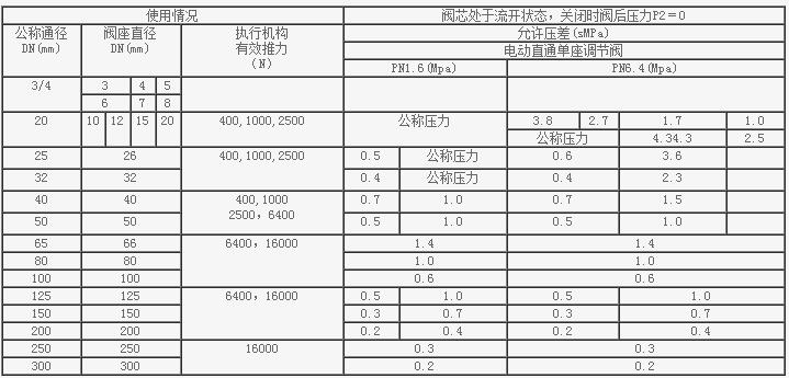 注:雙座、套筒閥一般可承受≤公稱壓力,單座調節(jié)閥差壓可參考上表。