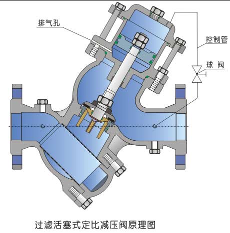 YQ98009過濾活塞式定比減壓閥是本公司新開發(fā)的一個產品,屬國內首創(chuàng)。該閥是利用進口、出口壓力作用面積之差,利用進、出口壓力不同情況下所受的作用力而達到平衡,使進、出口壓力的比值恒定為壓力比。從而達到定比減壓的目的。