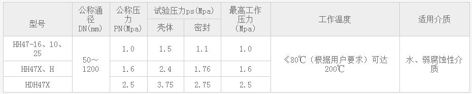 HH47、H47XF、HDH47X蝶式緩沖止回閥主要技術(shù)參數(shù)